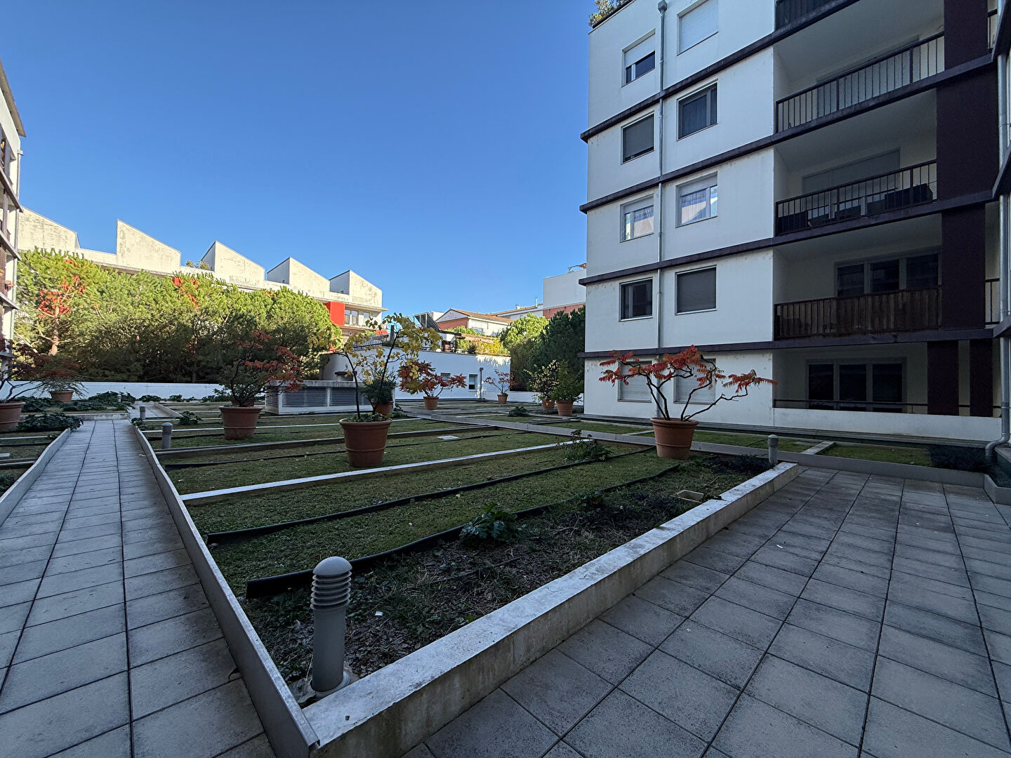 PONTS JUMEAUX - Métro CANAL DU MIDI. Dans résidence récente de standing, très calme en bordure du canal. Superbe T4 en rez de chaussée avec grande terrasse donnant sur intérieur résidence. Cuisine ouverte sur séjour, chambres avec placard. 1 cave. Colocation possible. DISPONIBLE
