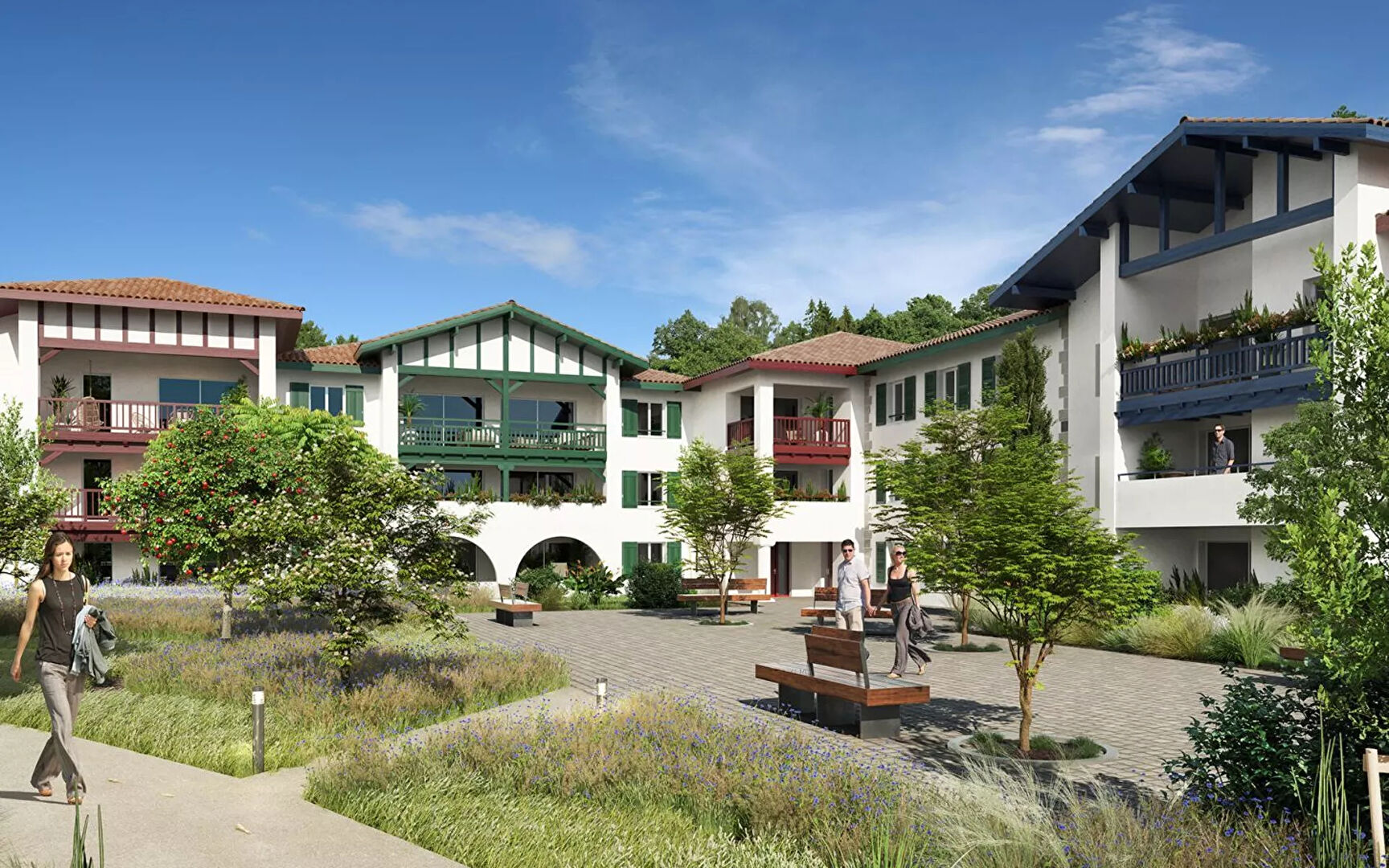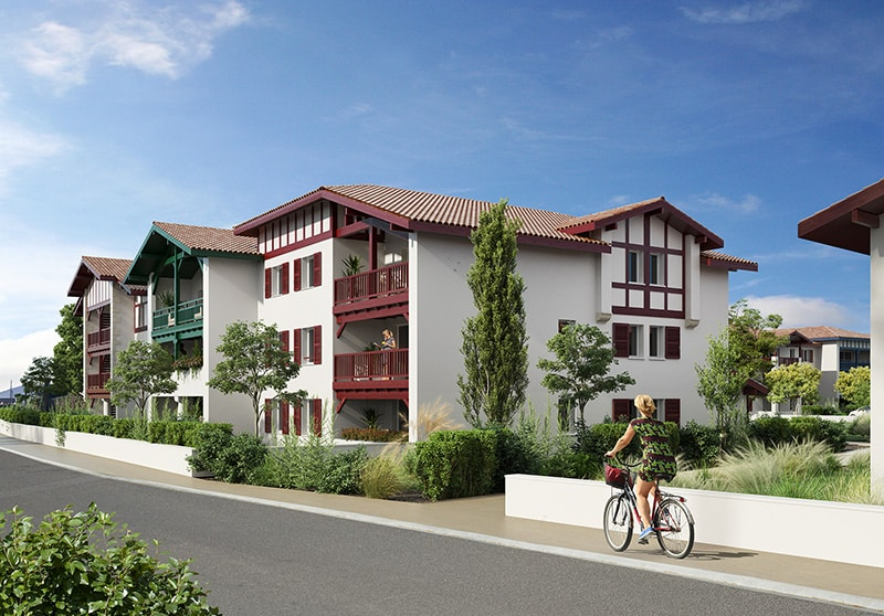 BIDART - DOMAINE SOURCE ROYALE / CÔTE BASQUE. Dans une résidence neuve à l'architecture basque traditionnelle. Environnement calme, à proximité des commodités, situé entre Biarritz et Saint-Jean-de-Luz. Appartement T3 MEUBLE en RDC d'environ 62m² - Cuisine ouverte aménagée et entièrement équipée. Terrasse au calme, exposée sud-est vue sur un étendu de verdure. 2 parkings en sous-sol. Proximité commerces, transports, à 20min à pied de la plage DISPONIBLE